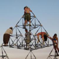These lucky people are climbing around a 22 feet (6.7 metres) tall structure composed of 384 softball bats, 130 soft balls and a couple of thousand pounds of steel. The structure represents a Sierpinski tetrahedron: a fractal which has finite volume but infinite area. The image only shows an approximation of the fractal of course, as it would be impossible to make a full-on Sierpinski tetrahedon with its infinite intricacy, but it's beautiful anyway!