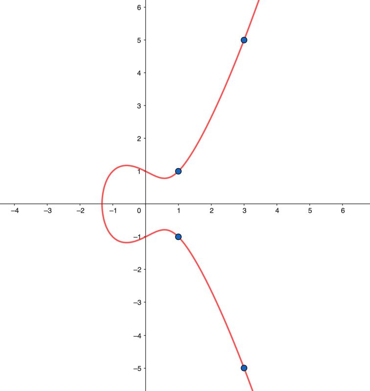To see how the other dimension comes into the picture, first note that when plotting our curves above we allowed the variables $x$ and $y$ to be real numbers. Amongst all these real numbers we then looked for solutions that were integers.