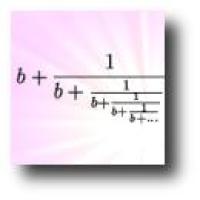 Consider the quadratic equation \setcounter{equation}{0} \begin{equation} \htmlimage{} x^2-bx-1=0 \label{A} \end{equation} Dividing by $x$ we can rewrite it as \setcounter{equation}{1} \begin{equation} x=b+\frac 1x \end{equation} Now substitute the expression for $x$ given by the right-hand side of this equation for $x$ in the denominator on the right-hand side: \setcounter{equation}{2} \begin{equation} x=b+\leftb \frac 1{b+\frac 1x} \rightb \end{equation} We can continue this incestuous procedure indefinitely, to produce a never-ending staircase of fractions that is a type-setter's nightmare: \setcounter{equation}{3} \begin{equation} x=b+\leftb \frac 1{b +\frac 1{b+\frac 1{b+\frac 1{b+\ldots}}}} \rightb \label{B} \end{equation} This staircase is an example of a \textit{continued fraction}. If we return to equation 1 then we can simply solve the quadratic equation to find the positive solution for $x$ that is given by the continued fraction expansion of equation 4; it is \setcounter{equation}{4} \begin{equation} x=\frac{b+\sqrt{b^2+4}}2 \label{Ba} \end{equation} Picking $b=1$, we have generated the continued fraction expansion of the \textit{golden mean},$\Phi$: \setcounter{equation}{5} \begin{equation} \Phi =\frac{\sqrt{5}+1}2=1+\frac 1{1+\frac 1{1+\frac 1{1+\frac 1{1+\ldots}}}} \label{B1} \end{equation} This form inspires us to define a general continued fraction of a number as \setcounter{equation}{6} \begin{equation} a_0+\frac 1{ a_1+\frac 1{a_2+\frac 1{a_3+\frac 1{1+\ldots + \frac 1{a_n} + \ldots}}} } \label{C} \end{equation} where the $a_n$ are $n+1$ positive integers, called the \textit{partial quotients} of the continued fraction expansion (cfe). To avoid the cumbersome notation we write an expansion of the form equation 7 as \setcounter{equation}{7} \begin{equation} [ a_0;a_1,a_2,a_{3},\ldots, a_n,\ldots] \label{Ca} \end{equation}
