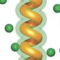 The researchers used this interaction of the spheres with the tubes, balancing the energy within the system, as a surrogate for the tight confines of the cell. Previous work published in Nature in 2000 suggested that, even without the spheres, in the confined environment of the cell the tubes would form helices with a particular geometry defined by their radius (R) and pitch (P - the distance between two points exactly one rotation apart on the helix). So, in Kamien and Snir's model, if the spheres are very small, the tube will bend into a helix with a pitch-to-radius ratio P/R = 2.5. Although this result has come entirely from a mathematical argument (which can also be used to study knot theory, finding optimal knots in the sense that they use the shortest amount of string), it closely agrees with the pitch-to-radius ratio found in models of real proteins.