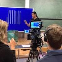 This photo shows Julia Gog (middle), Plus Editor Marianne Freiberger (left) and Howard France (right) of video production company Avito Ltd during a shoot for the Contagious Maths project.