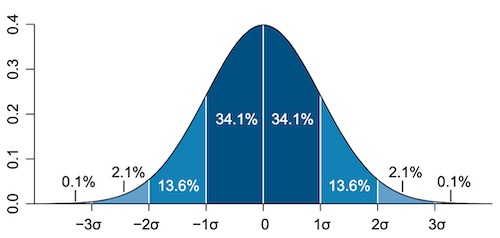 The Gaussian distribution showing the standard deviations. (Image by M. W. Towes - CC BY 2.5)