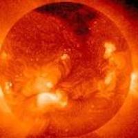 Figure 6 shows an image taken by the LASCO coronagraph on SOHO, which simulates a total eclipse of the Sun. The white circle shows where the Sun's disc should be (if it were not blocked out). Plasma, called a coronal mass ejection, is shot out into the solar wind and can impact on our own terrestial environment, causing problems with satellites, radio blackouts and disruption to electricity supplies. This is what we call space weather.