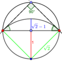 This suggests that we may be able to generalise the construction of our family of circles to get all other metallic numbers too. One thing we could change is the ratio of the radii of successive circles. Let's call this ratio $A$. In the above construction we had $A=\sqrt{2}$, which is related to the silver ratio as follows: