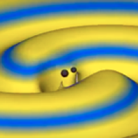 A computer simulation of two black holes merging. The simulation shows the gravitational waves caused by this event. Credit: Max-Planck-Institut für Gravitationsphysik (Albert-Einstein-Institut).