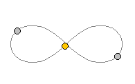 Montgomery and Chenciner have recently confirmed suspicions of another type of solution, where the bodies trace out a figure-of-eight. This new solution of the three-body problem is shown below (if your browser is Java-enabled it will be animated):