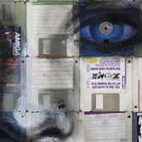 The prominence of something in our collective memory can be observed through the attention we give, such as through online searches. (Image is "Digital Montage Number 2", floppy disk painting by Nick Gentry, CC BY-SA 3.0)