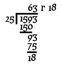 This is a perfectly legitimate answer, but sadly it is very difficult to come by negative bricks these days, and it certainly doesn't look like the smallest answer. So, Zurich ponders how to make $y$ positive without changing the sum of the equation from 177. To make the coefficient of 11 positive, he needs to add some multiple of 11, say $11n$, to the left hand side of the equation. To keep the equation true, he needs to take this multiple away again: $$25(708)+11(-1593)=25(708)+11(-1593+n)-11n=177.$$ To get the equation into the required form, he writes $$25(708-11n/25)+11(-1593+n)=177.$$ Since $11n/25$ must be a whole number, he nows that $n$ must be a multiple of $25$. Say $n=25t$ for some $t$. This gives $$25(708-11t)+11(-1593+25t)=177.$$ So now Zurich only needs to find a number $t$ so that $-1593+25t$ is greater than zero but as small as possible. Dividing 1593 by 25 using long division he gets: