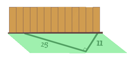 Luckily, Mr and Mrs Magnus' son, Zurich, knows a thing or two about numbers. As his parents discuss their dilemma over tea, Zurich writes out an equation: $$25x+11y=177,$$ where $x$ and $y$ are the height in bricks of the two respective walls. Chuffed with himself, he shows his parents and receives a solemn "that's nice dear".
