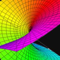The Riemann surface associated to the complex square root, represented in three dimensions. A loop around the point 0 on this surface (which is right at the centre) will take you once around the top sheet and once around the bottom sheet. Figure: Jan Homann.
