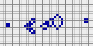 - Any dead cell with exactly three live neighbours becomes a live cell (as if by reproduction).