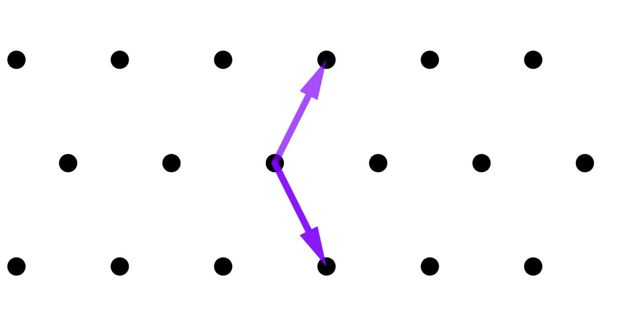 Finally, note that the same lattice can have different bases. In the example below, two different pairs of arrows give you the same lattice.