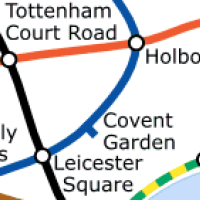 ![]() A piece of a geographically accurate map of the London Underground (top, image from Wikimedia commons) and the (roughly) corresponding piece of the network on the actual map (bottom). |