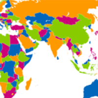 Maps showing different countries have been produced since the 1800s. To distinguish between the countries it was useful to colour them in different colours. A simple rule for doing this was that any two countries which shared a border, other than meeting at a point, should have different colours. Now, it costs money to print a coloured map, so map makers aimed to find the smallest number of colours needed to colour the map with the "no touching condition". It was found experimentally that all of the maps considered only needed four colours to colour them in. Here is an example of a map of the world coloured with exactly four colours with no adjacent countries having the same colour.