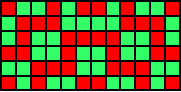 Observe pairs of horizontal or vertical neighbouring grid points in this example. What can be said about the distribution of red and green unit squares in the middle between the two grid points?