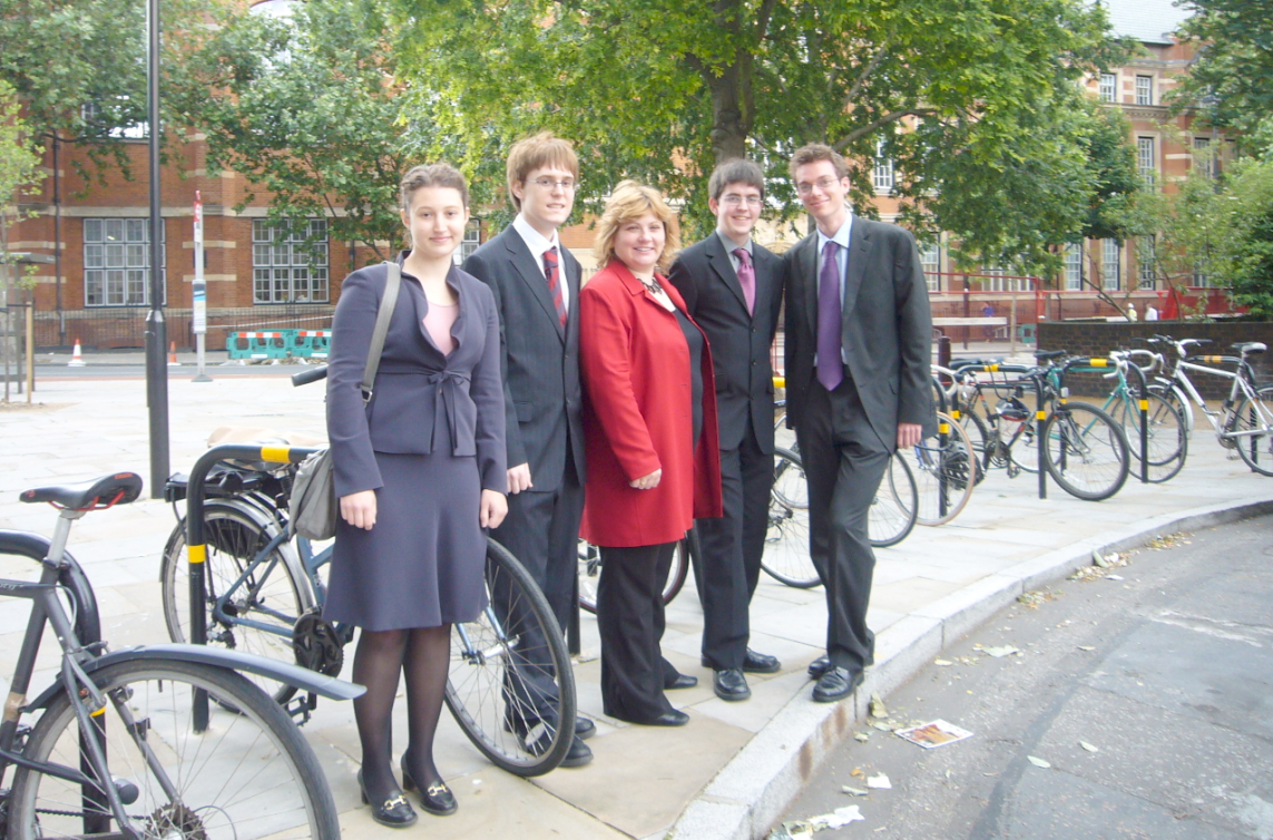 MP Emily Thornberry, eBourbaki founder Eliana Hechter, and contest winners Peter Eccles, Tom Hudson, and Ryan Lothian.eBourbaki has announced the winners of its 2008 Bicycles in London mathematical modelling competition. The contest took place in early May, and students were asked to model a network of low-cost rental bicycles for the City of London. Students were able to explain mathematically why some schemes in Europe have succeeded while others have failed. For more information on the contest, see our story on the Plus blog
