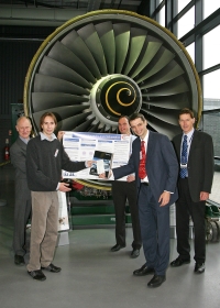 Last year's winner, Michael Manfredi, was presented with his prize by Charlie Stripp of the Further Maths Network at the Rolls-Royce Learning and Career Development Centre in Derby (Michael's the one in the picture receiving the cheque!). You can see Michael's winning poster on cryptography on the Further Maths Network Website.