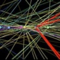 An event recorded by the ATLAS detector in 2012 showing the characteristics expected from a Higgs boson decaying into four electrons. (Image ATLAS)