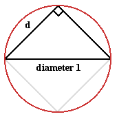 Take a square of sidelength 1; it has area $1 \mbox{ unit}^2$. The biggest circle that can fit inside has diameter 1 and area $\pi\times (0.5)^2 = \pi/4 \mbox{ units}^2$. \par The area of this circle divided by the area of the square containing it is $\pi/4$. \par Now we fit the largest possible square inside that circle of diameter 1. We use Pythagoras' Theorem to find its sidelength $d$. \begin{eqnarray*} 2d^2 & = & 1;\\ d & = & 1/\sqrt{2}. \end{eqnarray*} The area of this square is $1/2 \mbox{ units}^2$. \par