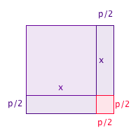 After the part where the rectangles are rearranged, it says: "still has area p^2 +px=q...".