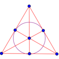 The solution is here if you want to see it. It forms what is called a Steiner triple system: an arrangement of $n$ objects (in the example $n=9$ and the objects are people) into triples so that no two objects appear in the same triple more than once. The picture on the right shows an $S(2,3,7)$ Steiner system. There are seven points and seven lines (we count the central circle as a line too). Each line contains three points and every pair of points only appears on one line. In other words, the lines define triples of points so that no pair of points occurs in more than one triple. More generally, a Steiner system $S(t,k,n)$ is an arrangement of $n$ objects into groups of $k$ so that no set of $t$ objects appears in the same group of $k$ more than once.