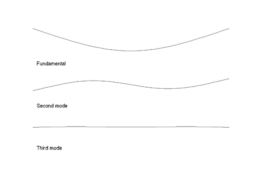Each natural frequency is associated with a particular pattern of vibration, called a mode shape. The first few mode shapes of a vibrating string are shown here:
