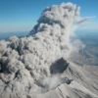 Aerial view of Mount St. Helens' crater rim and plume on 5 October 2004. Photograph courtesy of USGS